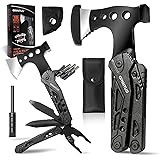 Camping Multitool Accessories Gifts for Men Dad 16 in 1 Upgraded Multi Tool Survival Gear with Axe Hammer Pliers Saw Screwdri...